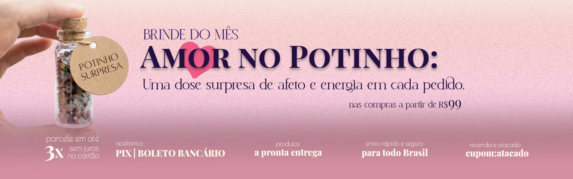 NOVIDADES EM ACESSÓRIOSColar Círculo da Energia – Cristal NaturalR$ 119,99Loading...Colar Círculo da Proteção – AmetistaR$ 119,99Loading...Colar Proteção Espiritual – Drusa de AmetistaR$ 139,99Loading...Colar Serenidade Celeste – Drusa de CelestitaR$ 199,99Loading...Colar Energia Radiante – Drusa de CristalR$ 99,99Loading...Colar Proteção Ativa – Olho de Tigre BiterminadoR$ 119,99Loading...Colar Amor em Equilíbrio – Quartzo Rosa BiterminadoR$ 119,99Loading...Colar Conexão Natural – Ponta de EsmeraldaR$ 149,99Loading...Colar Vitalidade Natural – Calcita LaranjaR$ 69,99Loading...Colar Vitalidade Natural – Quartzo VerdeR$ 69,99Loading...Gargantilha Harmonia Fluorita – PrateadaR$ 109,99Loading...Colar Geometria Sagrada – Cristal em TriânguloR$ 129,99Loading... DESTAQUES DA SEMANAPonta de SelenitaR$ 99,99Loading...Pedra Rolada Apatita - UNR$ 9,99Loading...Coração de Quartzo RosaR$ 19,99Loading...Pirita Natural Extra (P)R$ 9,99Loading...Pedra Rolada Cornalina (Ágata de Fogo) - UnidadeR$ 6,99Loading...Mini Kit 7 Chakras Orgonites AlinhamentoR$ 49,99Loading...Purpurita Bruta - UnidadeR$ 14,99Loading...Mini Drusa de Cristal FumêR$ 14,99Loading...Cianita Azul Pequena - UnidadeR$ 4,99Loading...Pontinha de Cristal Lapidada (unidade)R$ 17,99Loading...Obsidiana Negra Bruta - unidadeR$ 39,99Loading...Cartela de Coleção Minerais e RochasR$ 99,99Loading... Mesa de Páscoa: A Energia das Pedras Naturais na sua CelebraçãoBandeja de Pedra Ágata Natural com Borda Dourada (15 x 14 cm)R$ 309,99Loading...Kit com 4 Porta-Copos em Mosaico de Quartzo Branco com Pedras NaturaisR$ 229,99Loading...Kit com 4 Porta-Copos de Mosaico – Jaspe Vermelho com Pedras NaturaisR$ 229,99Loading...Bandeja Imponente de Geodo de Ágata Natural com Borda Dourada - 2,1kgR$ 1.909,99Loading...Bandeja de Luxo em Pedra Ágata Negra com Borda Dourada - 34 cmR$ 799,99Loading...Bandeja Decorativa de Ágata Roxa Borda Dourada – 26 x 25 cmR$ 1.299,99Loading...Bandeja Decorativa de Ágata Rosa Borda Dourada– 16 x 13 cmR$ 279,99Loading...Bandeja Decorativa de Ágata de Fogo Borda Dourada – 18 x 13 cmR$ 299,99Loading...Bandeja Decorativa de Ágata Negra Borda Dourada - 19 x 15 cmR$ 329,99Loading...Bandeja Decorativa de Ágata Rosa com Borda DouradaR$ 349,99Loading...Bandeja de Ágata - 35 x 26 cmR$ 669,99Loading...Bandeja de Ágata AzulR$ 1.499,99Loading... GARIMPO DA SEMANA, VEM CONFERIRCrisocola com Malaquita Bruta – Peça 4R$ 219,99Loading...Bismuto Cristalizado Natural - Peça 14R$ 199,99Loading...Bismuto Cristalizado Natural - Peça 8R$ 199,99Loading...Pássaro Arara em Quartzo Rosa – 24cmR$ 999,99Loading...Pedra com Raio - 26R$ 99,99Loading...Pássaro Beija-flor em Pedra na Base de Selenita – 20cmR$ 599,99Loading...Porta-Incenso de Drusa de Ametista Natural – Proteção e Purificação EnergéticaR$ 99,99Loading...Bandeja de Pedra Ágata Natural com Borda Dourada (15 x 14 cm)R$ 309,99Loading...Kit com 4 Porta-Copos em Mosaico de Quartzo Branco com Pedras NaturaisR$ 229,99Loading...Kit com 4 Porta-Copos de Mosaico – Jaspe Vermelho com Pedras NaturaisR$ 229,99Loading...Bandeja Imponente de Geodo de Ágata Natural com Borda Dourada - 2,1kgR$ 1.909,99Loading...Bandeja de Luxo em Pedra Ágata Negra com Borda Dourada - 34 cmR$ 799,99Loading... 🔥 ATACADO 50% OFF! Confira as Condições Exclusivas! 💎Cascalhinho de Pedra Variadas (Pacote 1kg)R$ 44,99Loading...Pirita Natural Extra KgR$ 299,99Loading...Pedra Bruta Quartzo Verde- 1kgR$ 19,99Loading...Pedra Bruta Ametista- 1kgR$ 19,99Loading...Pedrinhas Roladas (1cm) 1kgR$ 69,99Loading...Turmalina Negra Caixa Coleção (kg)R$ 249,99Loading...Pedra Bruta Quartzo Rosa- 1kgR$ 39,99Loading...Pedra Rolada Cristal (1kg)R$ 99,99Loading...Pedra Rolada Quartzo Rosa (1kg)R$ 99,99Loading...Turmalina Negra - Peças Pequenas - Pacote 1kgR$ 149,99Loading...Aliança de Quartzo AzulR$ 24,99Loading...Aliança Citrino NaturalR$ 24,99Loading... ✨ Encontre Seu Cristal Perfeito! 🛍️ Visite Nossas LojasPRONTA ENTREGAEnviamos para Todo Brasil | Para Exterior | Lojas FísicasParcele suas compras em até 3x sem juros no cartão | Aceitamos Boleto | PIXAtacadoSaiba como Funciona
